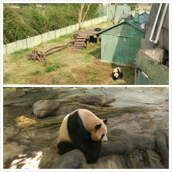 “看,熊貓!” 一只熊貓正蜷著慵懶的身軀,又緩緩地席地而坐。圓嘟可愛的大熊貓好像看到了我們在跟它打招呼,慢悠悠地向我們爬來?!班耍爝^來!”只見它一把抓起竹子,就往嘴里塞。OH NO!原來是沖著它最心愛的竹子而來!