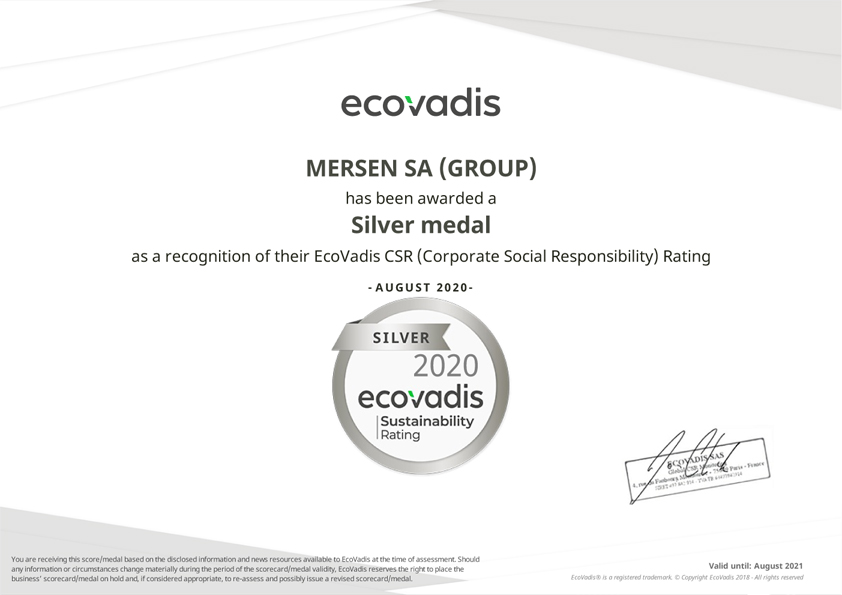 MERSEN(美爾森)踐行此觀念,在2020年,榮獲CSR(Corporate social responsibility-企業(yè)社會責(zé)任)榮譽稱號。