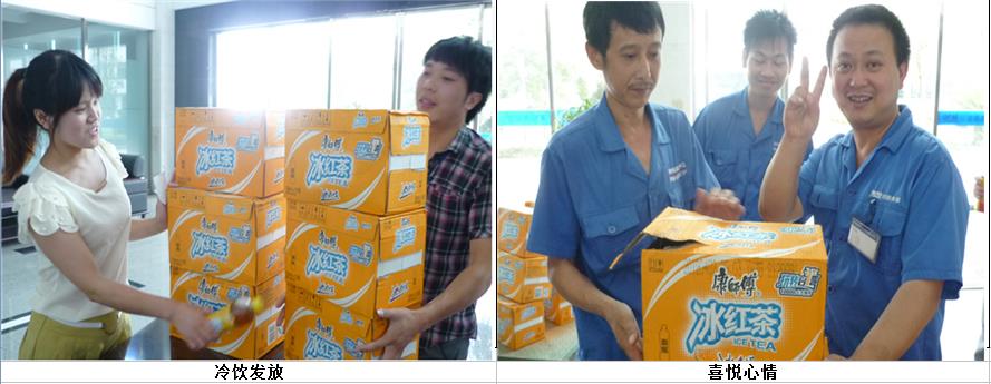 在工作日,每日早晨9:00左右投放冰爽雪糕,下午14:30投放冰鎮(zhèn)不同類(lèi)型冷飲供員工飲用,以及每日不同時(shí)間段提供冰鎮(zhèn)綠豆湯供全廠員工飲用。