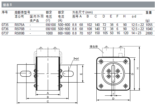 本系列熔斷體額定分斷能力至100kA。