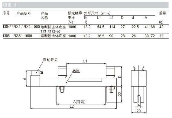 3:支持熔斷撞擊體和微動(dòng)開關(guān)用的底座熔斷報(bào)警器一般并聯(lián)在熔斷體兩端蓋板固定螺釘下,當(dāng)熔斷體熔斷時(shí),熔斷撞擊體緊接著動(dòng)作,彈出撞針,推動(dòng)微動(dòng)開關(guān),發(fā)出信號(hào)或自動(dòng)切換電路。底座上下兩固定(接觸)端之間距離可在一定范圍內(nèi)調(diào)節(jié)、以適應(yīng)不同高度的熔斷體并聯(lián)(固定)之用。